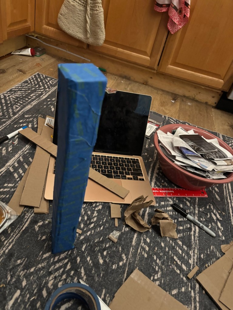 On a lighter note, this week I’ve started a few projects that I am super proud of. The biggest one is that I just started working with paper mache. I’m not familiar with the field so I didn’t realize that it got a bit of backlash, people undermine its strengths and just see it as a kids project. What they don’t know is that there are actual paper mache sculptors out there that take something as simple as paper and they make furniture out of it. How cool is that? Even if you’re worried about it molding or getting wet, there are so many solutions to that. If you’re afraid of it molding, add a bit of salt to that glue mixture, don’t add flour if you want a longer shelf life. There are a few methods to successfully making the project water resistant, I’ve found a bit but I might want to make a homemade mixture in the future that I like so that is to be determined. If you want to go the simpler route, people seal it with things such as epoxy resin, varnish, polyurethane, etc. After some research, I’ve decided to start with creating a tiny side table that I can put by the door of our apartment. It’ll be on the staircase by all of our shoes and we can put tiny trinkets on the mini table. I also want it to be a bit abstract looking so there will be a sphere in the middle of the table with spikes coming out of it.